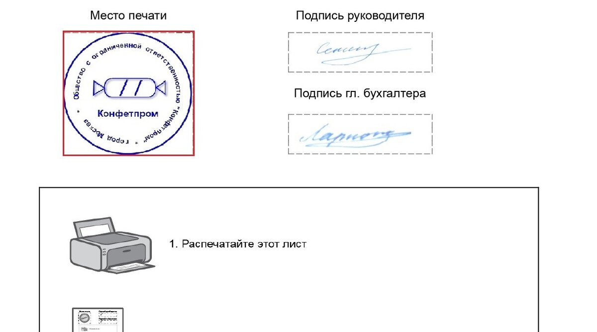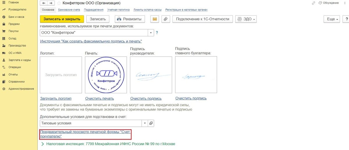 При загрузке печати и подписи в программу 1С, проверьте правильность их расположения и масштабирования на предварительном просмотре документов.