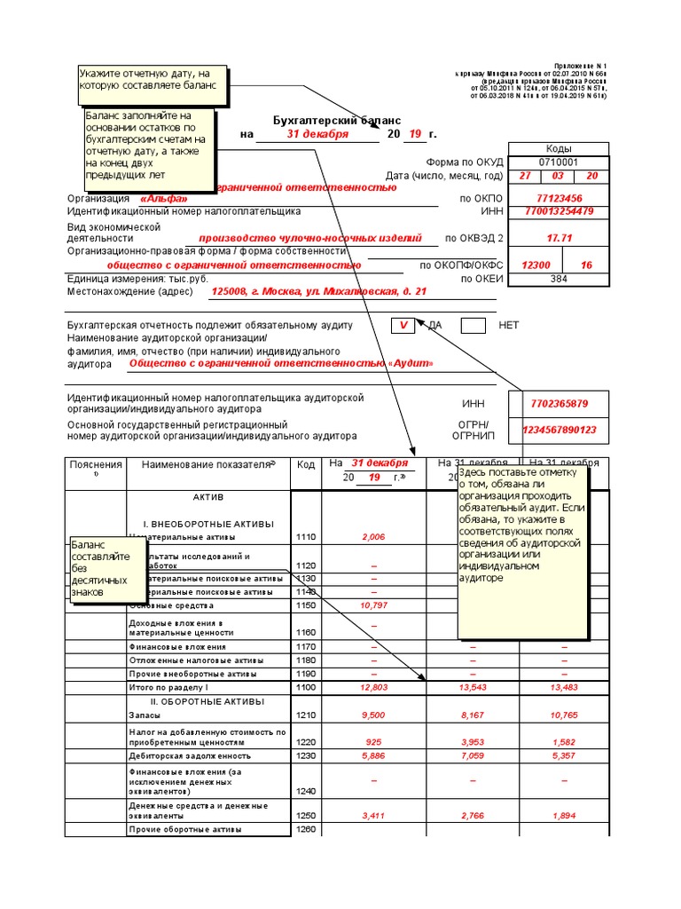 Пример заполнения бухгалтерского баланса. Как сформировать бух баланс.