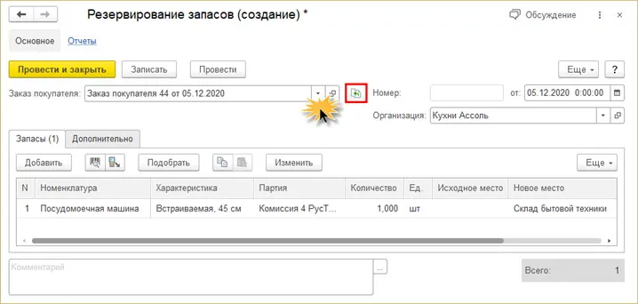 Резервирование товара в 1С Управлении торговлей 10 3