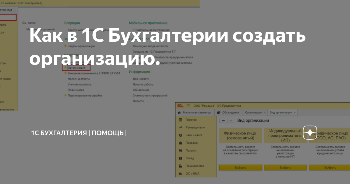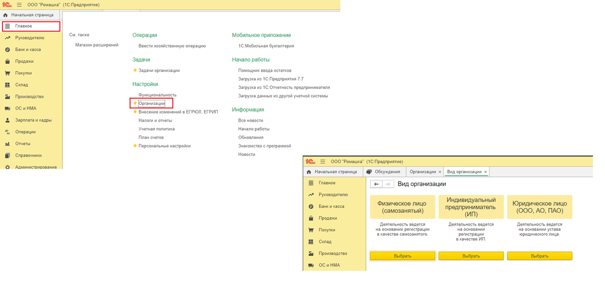 1С Бухгалтерия добавление организации и базы данных