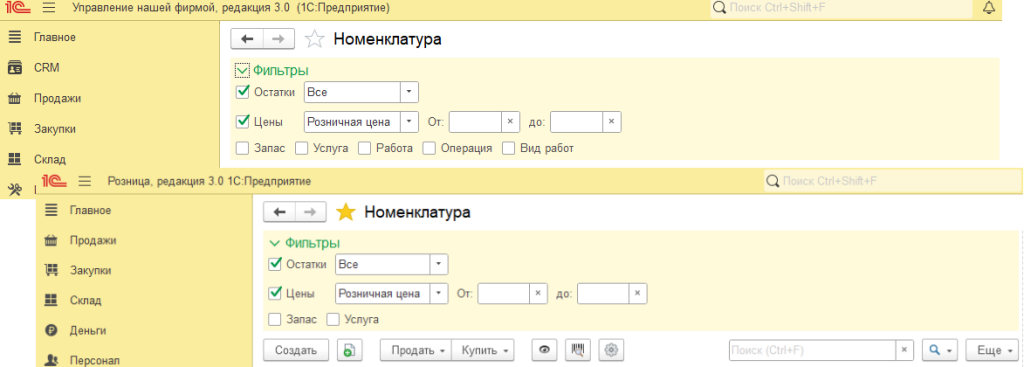 Категории номенклатуры в 1С УНФ и 1С Розница 3.0