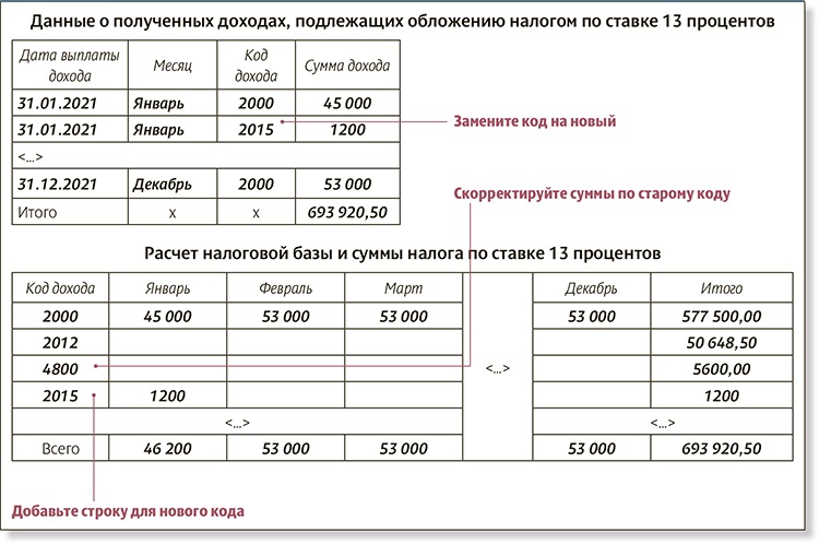 Не забывайте вносить изменения в код дохода по мере необходимости.