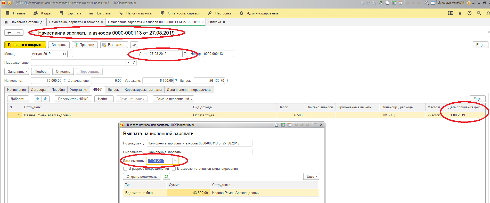 Урок 17. Выплата зарплаты и перечисление НДФЛ