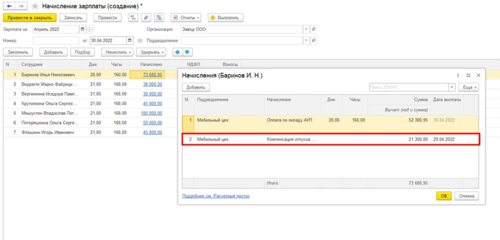 Компенсация отпуска при увольнении в 1С 8.3 Бухгалтерия
