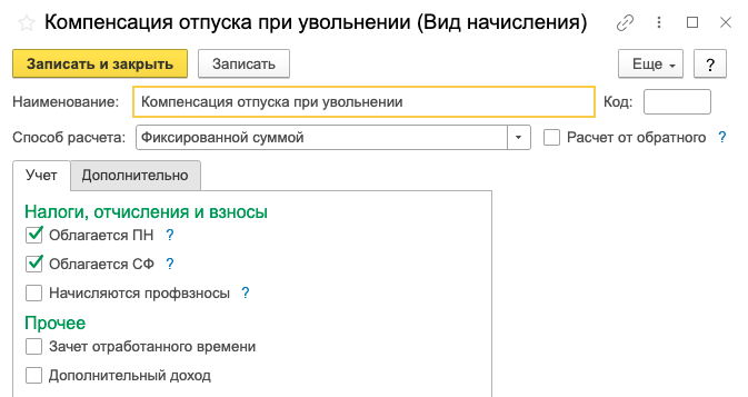 Компенсация за неиспользованный отпуск в 1С Бухгалтерия 8