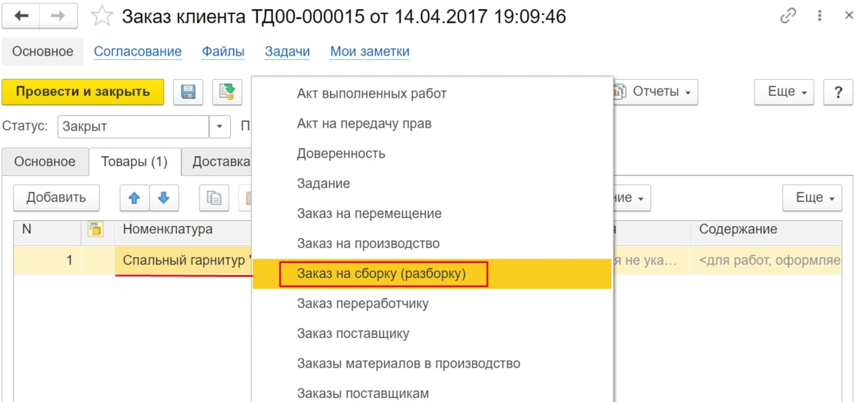 Комплектация номенклатуры в 1С 8.3 пример заполнения