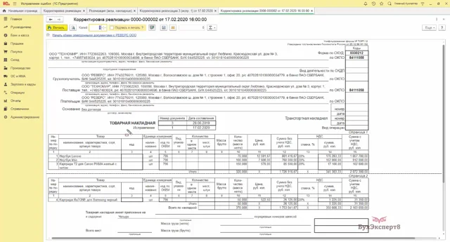 Исправление (корректировка) реализации в 1С бухгалтерия 8.3.