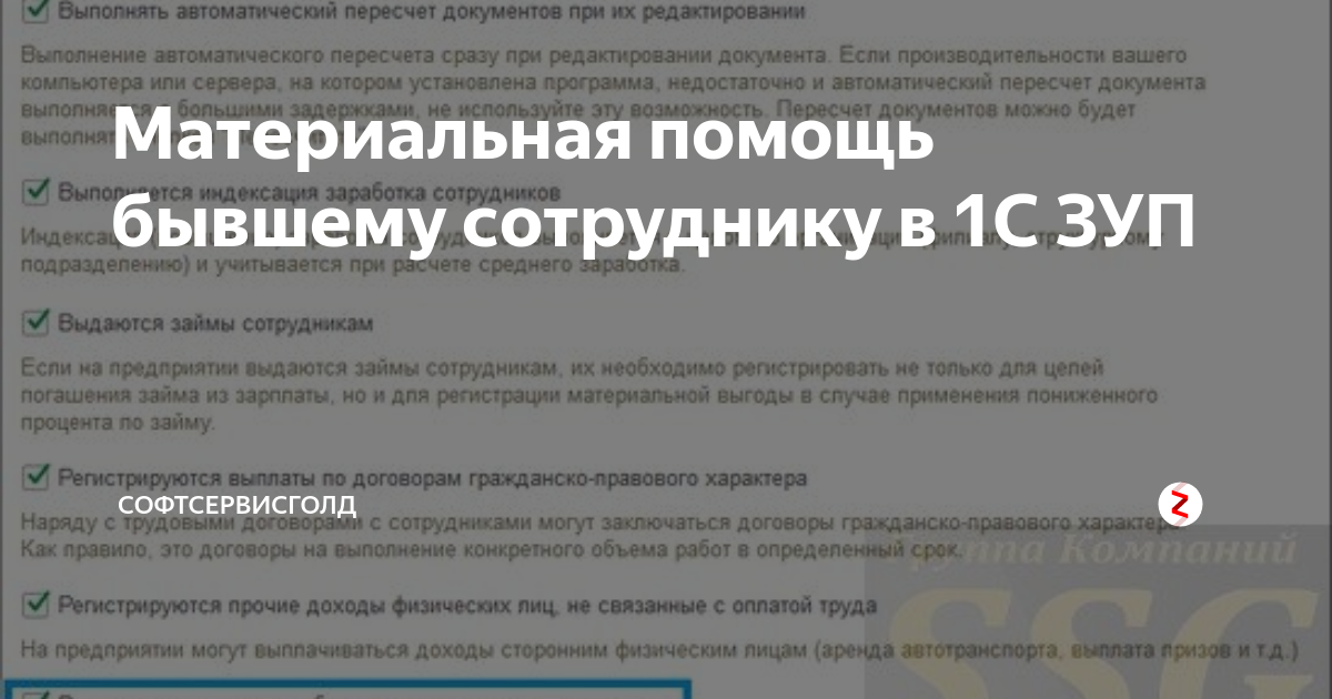 Материальная помощь бывшему сотруднику - как отразить в 1С:ЗУП 8?