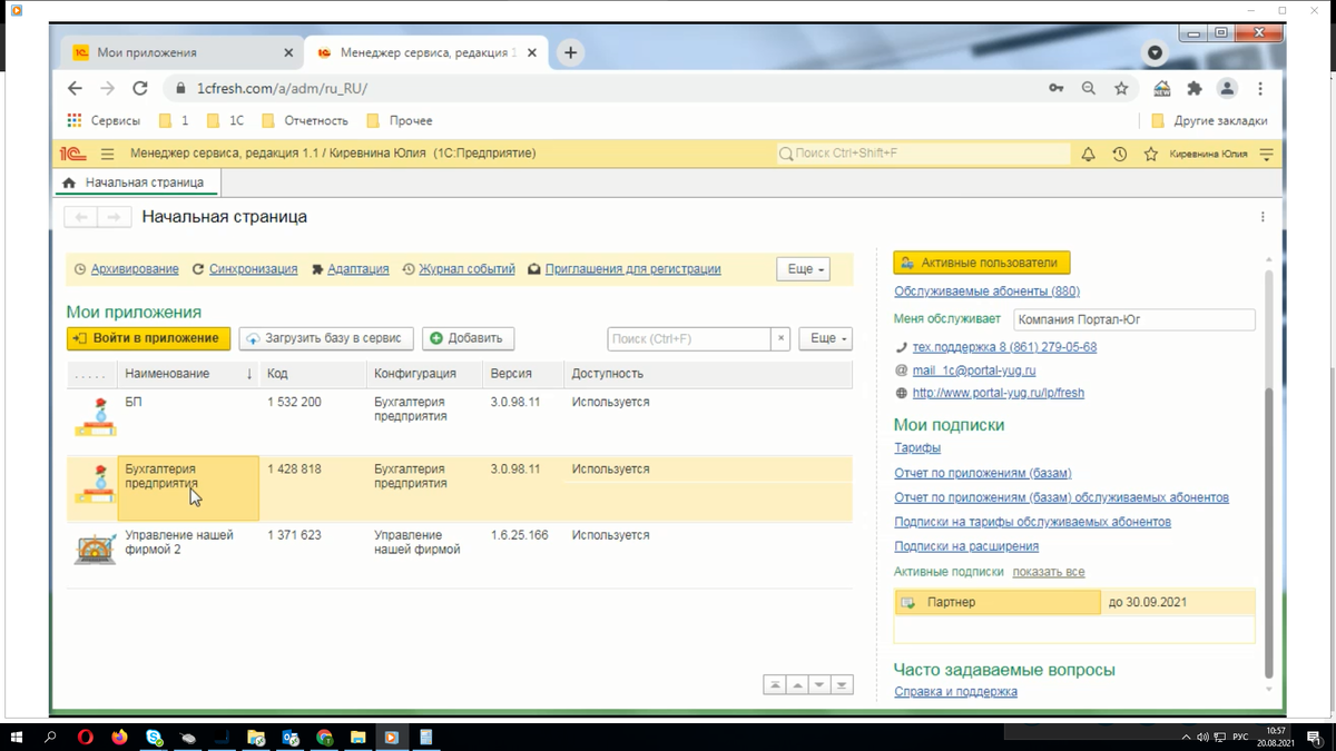 Партнерам: Как получить копию приложения или доступ в рабочую базу клиента через Менеджер сервиса
