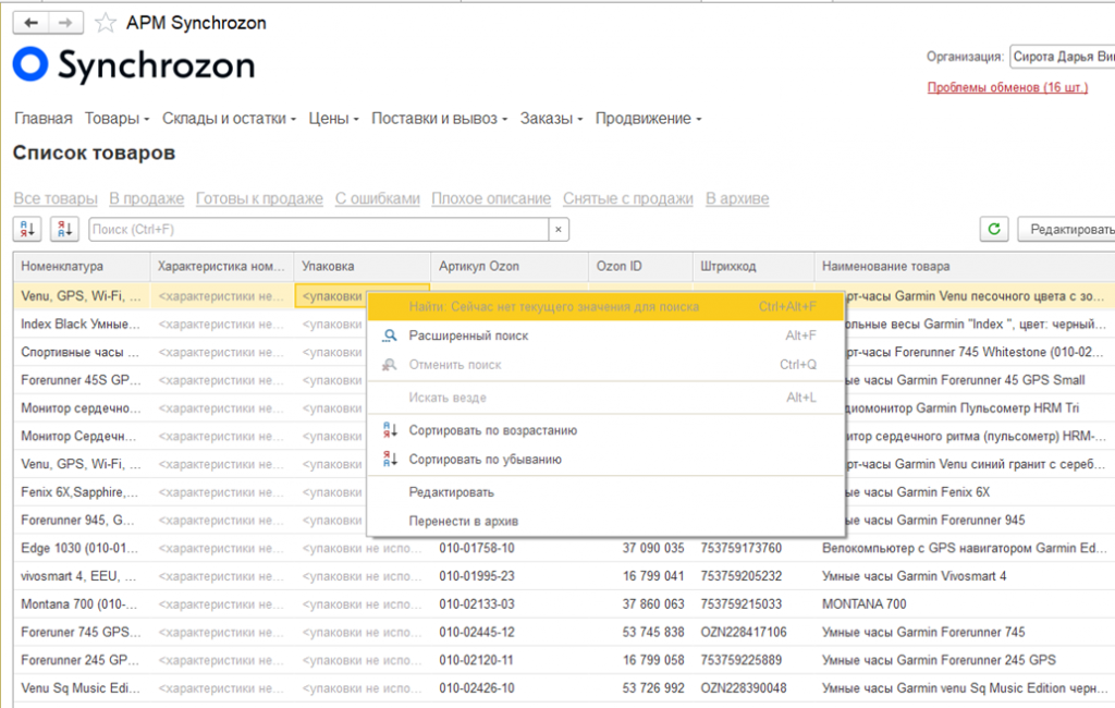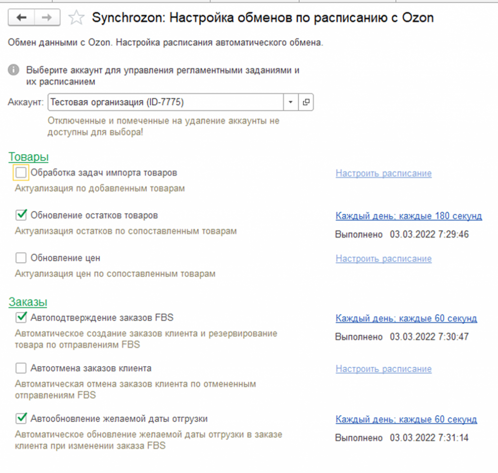 Синхронизация 1С с Ozon