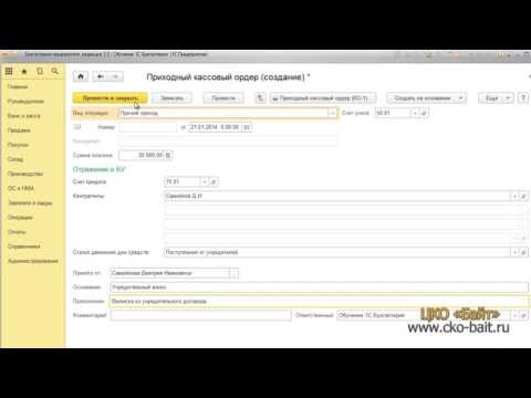 Поступление наличных в кассу в 1С 8.3 Бухгалтерия