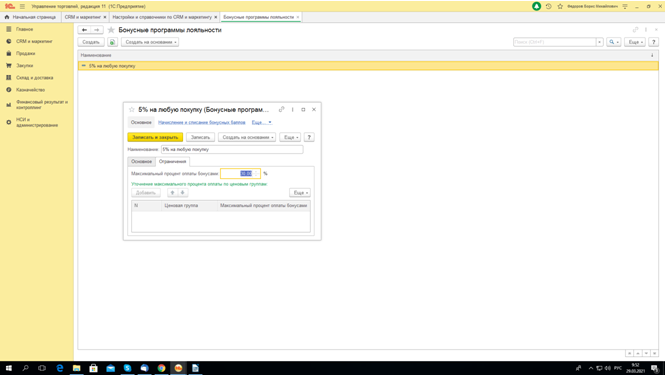 Система лояльности. Накопительные бонусы в 1С УТ 10.3