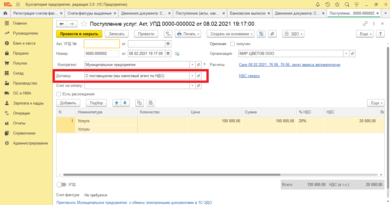 Налоговые агенты по НДС в 1С:Бухгалтерия 8