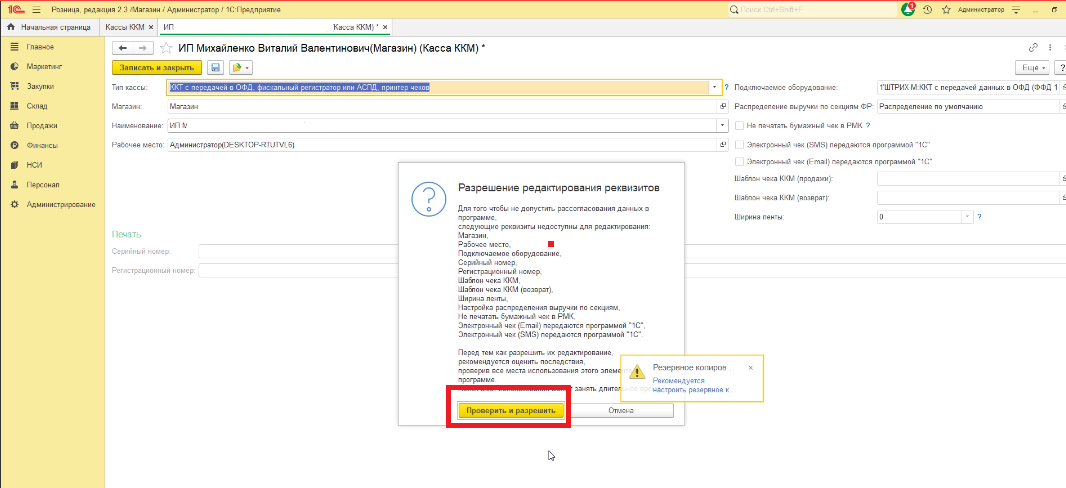 Не смогли определить доступные кассы ККМ в 1С Розница? Запросите помощи у администратора системы!