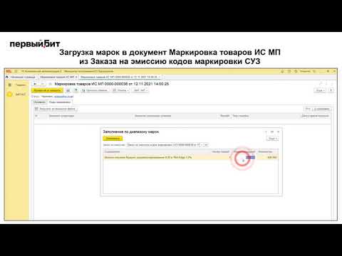 Загрузка марок в документ Маркировка товаров ИС МП из Заказа на эмиссию кодов маркировки СУЗ