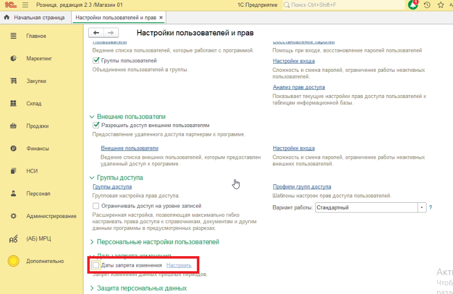 Запретить пользователям изменять документы - Дата запрета редактирования - Настройка 1С