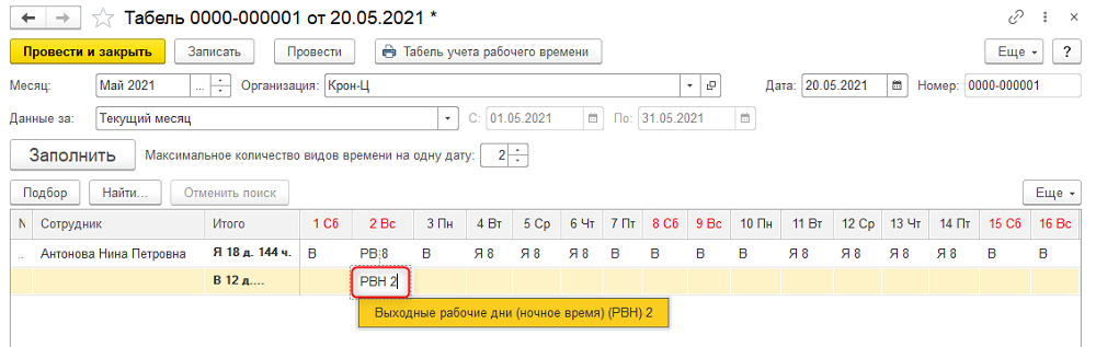 Как отразить работу в выходной день в 1С:ЗУП 8