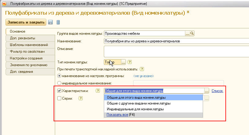 Виды номенклатуры в 1С КА 2 и ERP: настройка создания номенклатуры