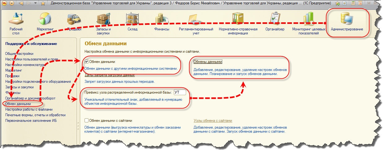 Настройка обмена данными между 1с \