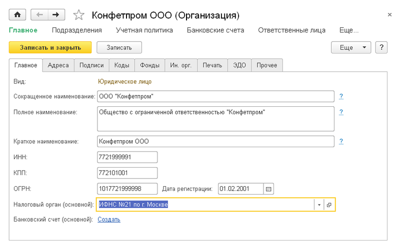 Ввод новой организации в 1С 8.3 и настройка учетной политики