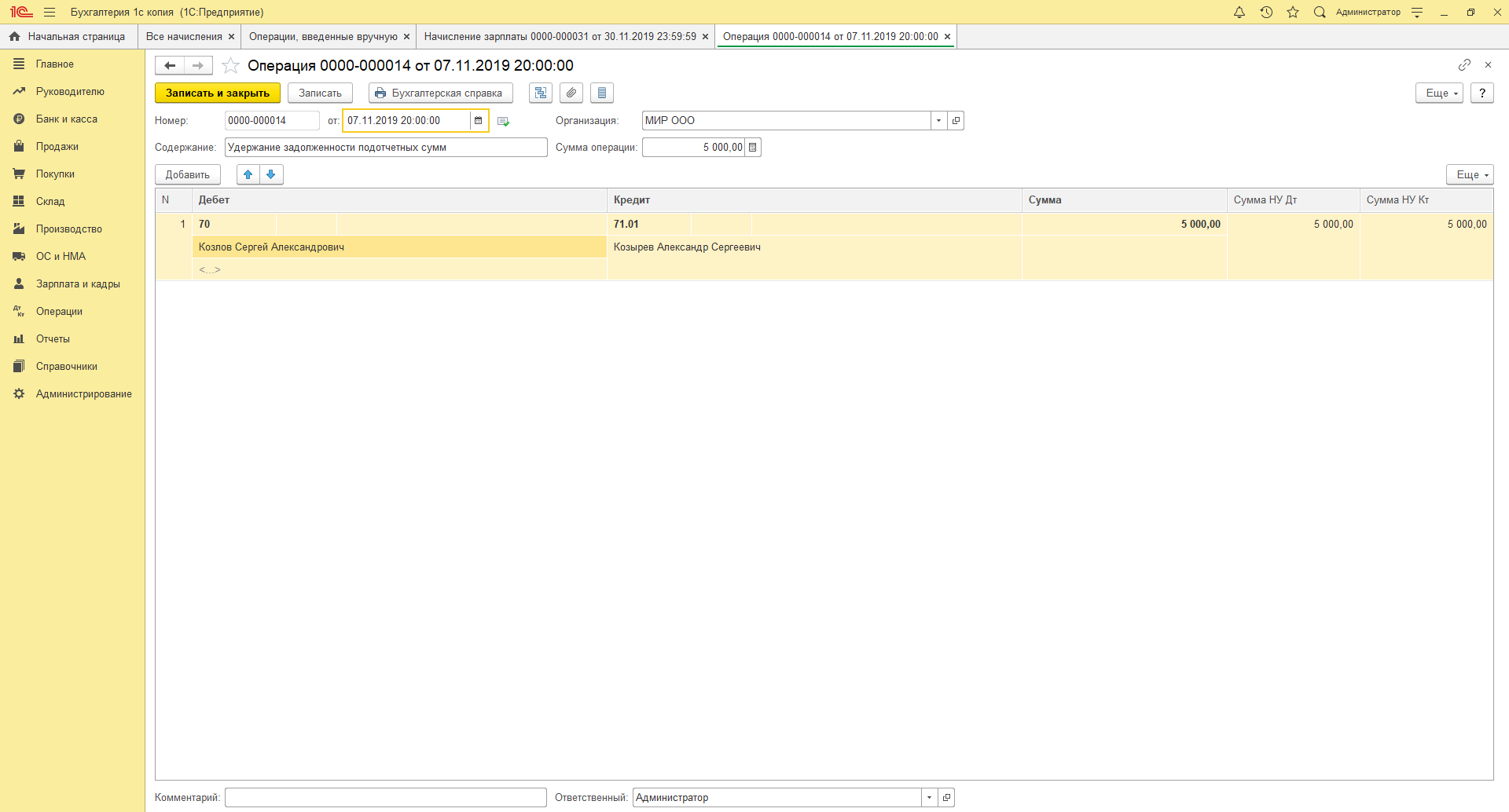 Обязательно проверяйте правильность ввода данных перед сохранением операции в системе.