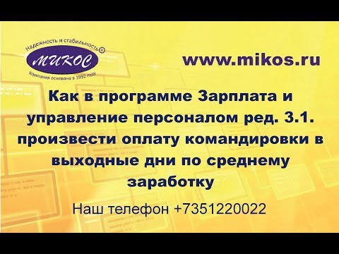 Обучение 1С. Как в программе ЗУП ред. 3.1. произвести оплату командировки в выходные дни