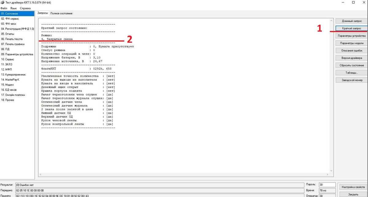 Рассогласование состояния ККМ и 1С по открытию или закрытию смены