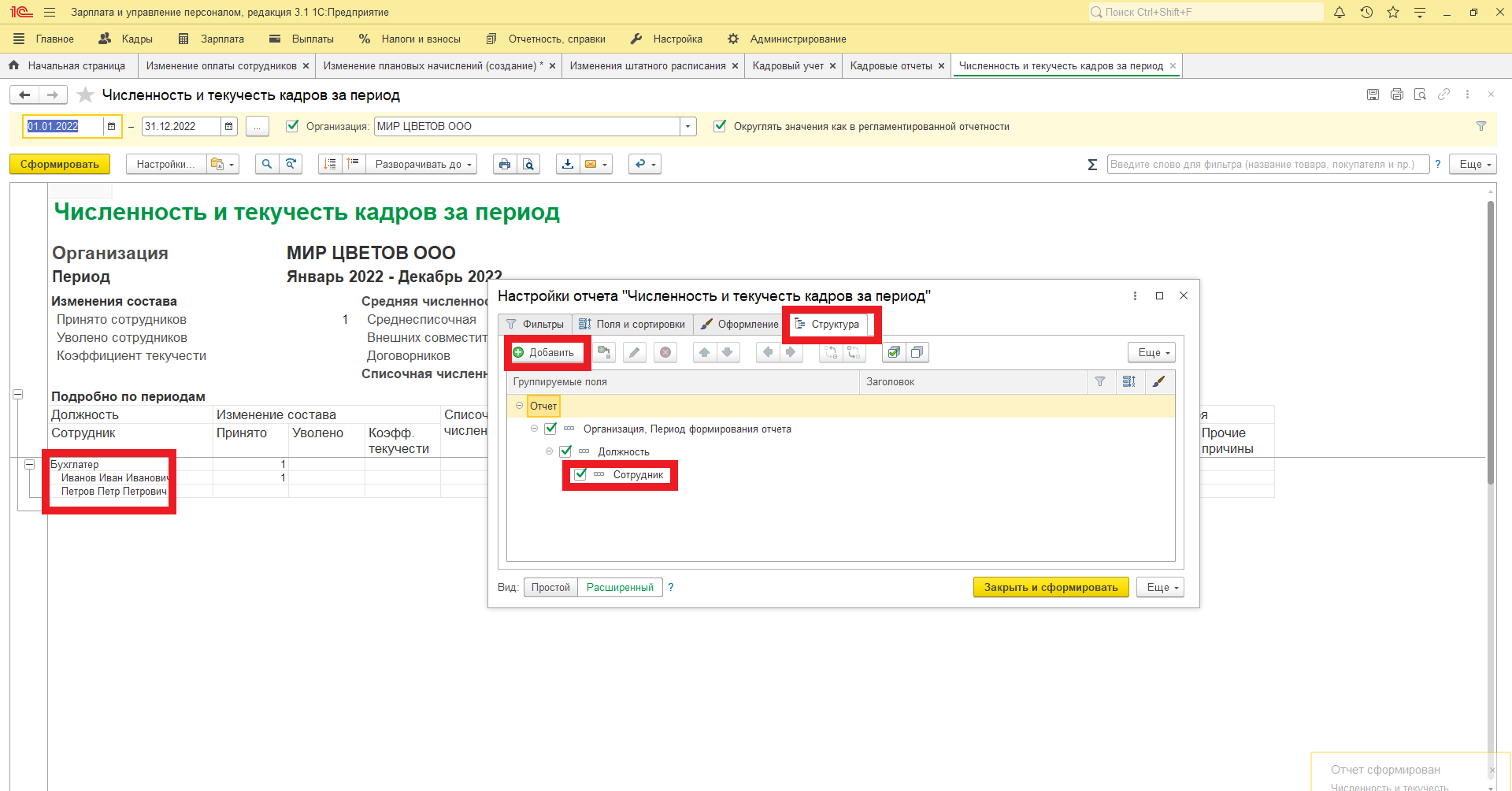Кадровые отчеты в 1С:ЗУП 3.1