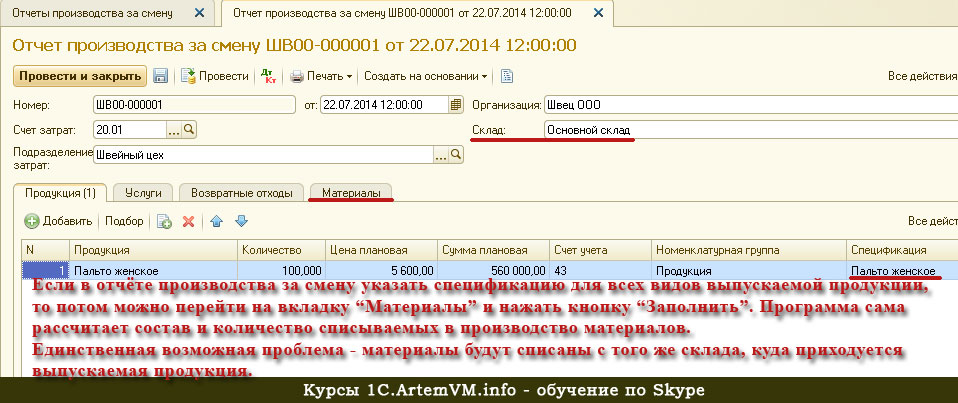 Отчет производства за смену: пример заполнения в 1С:Бухгалтерия