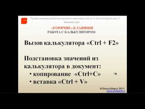 Горячие клавиши в 1С 8.2 и 8.3 Бухгалтерия Вызов калькулятора