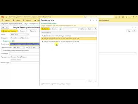 1С:ЗУП 3.1 Отпуск без сохранения заработной платы