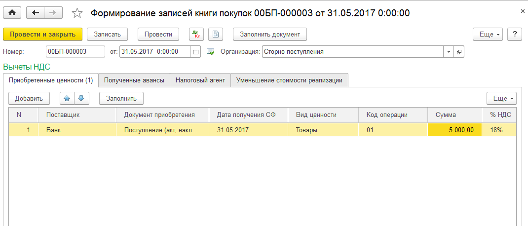 Формирование записей книги покупок в 1С 8.3 Бухгалтерия