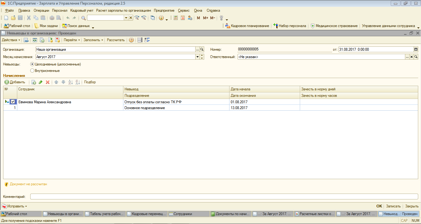 Учет отсутствий в ЗУП 3.1.14: отстранение от работы, продление отпуска в связи с болезнью и др.