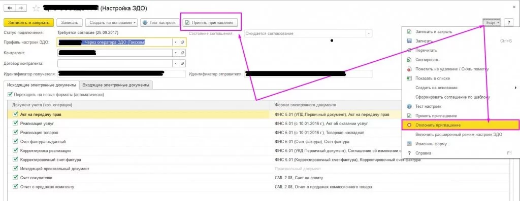 Отправка электронных документов в 1С-ЭДО