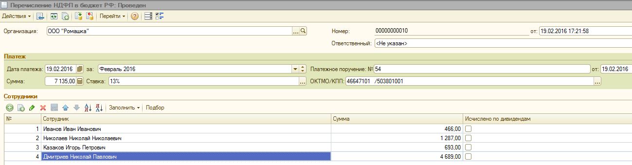 Обновления в документе «Перечисление НДФЛ в бюджет». Учет перечисленного НДФЛ в 1С ЗУП 8.3 (Вар. 2)