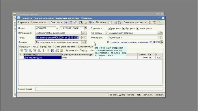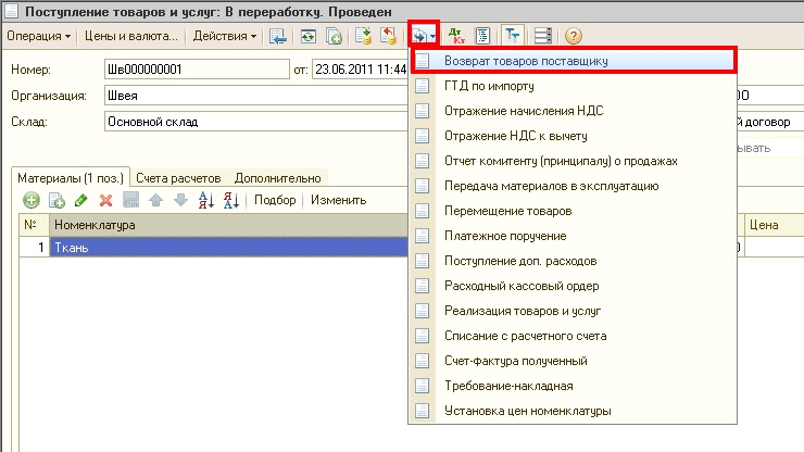 Передача в переработку - 1C:ERP 2.4 - 1С:Учебный центр №1