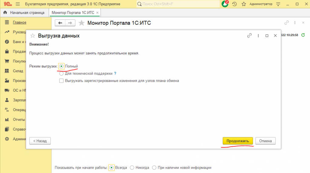 1С:ФРЕШ -- Выгрузка локальной базы 1С и загрузка в сервис --