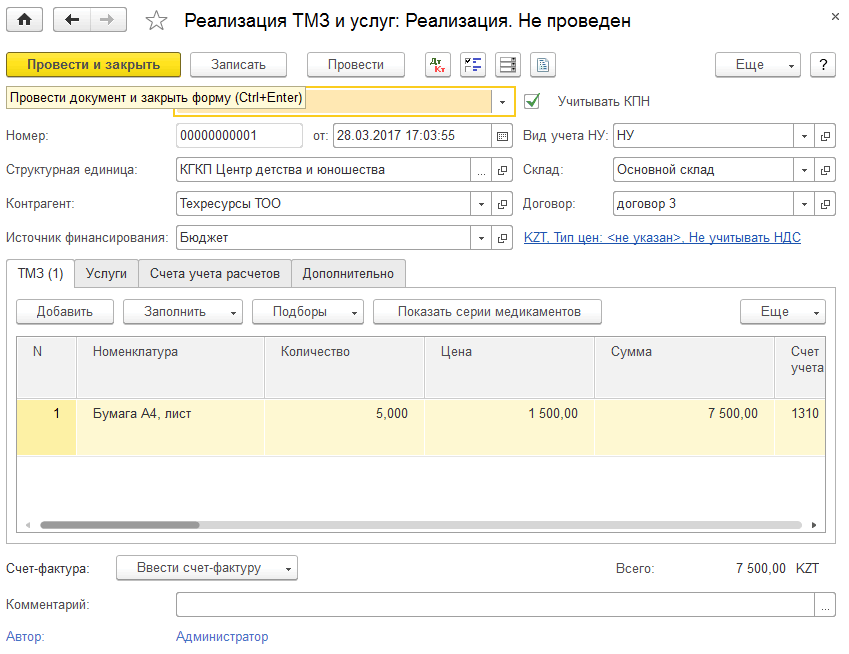Поступление ТМЗ и услуг, Акт сверки и доверенность 1С 8.3 для Казахстана