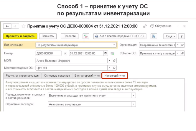 Принятие к учету ОС в 1С 8.3 - пошаговая инструкция