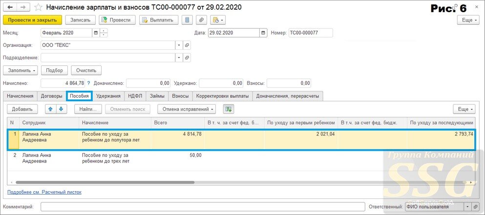Как начислить пособие по уходу за ребенком до 1,5 лет в 1С