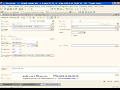 Поступление средств на расчетный счет и настройка клиент-банка в 1С