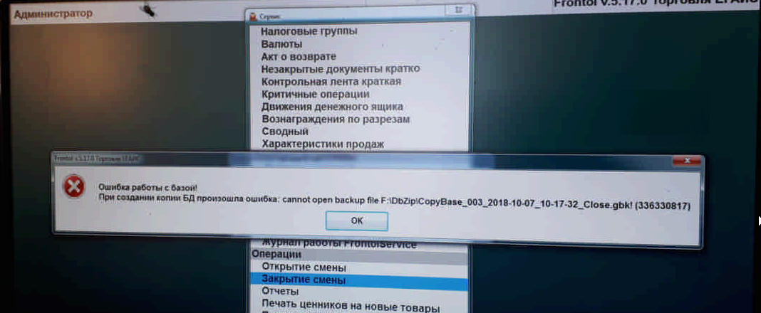 Закрытие смены в 1с Бух: При формировании отчета произошла ошибка: “FFFFFFFFh, Нет связи”