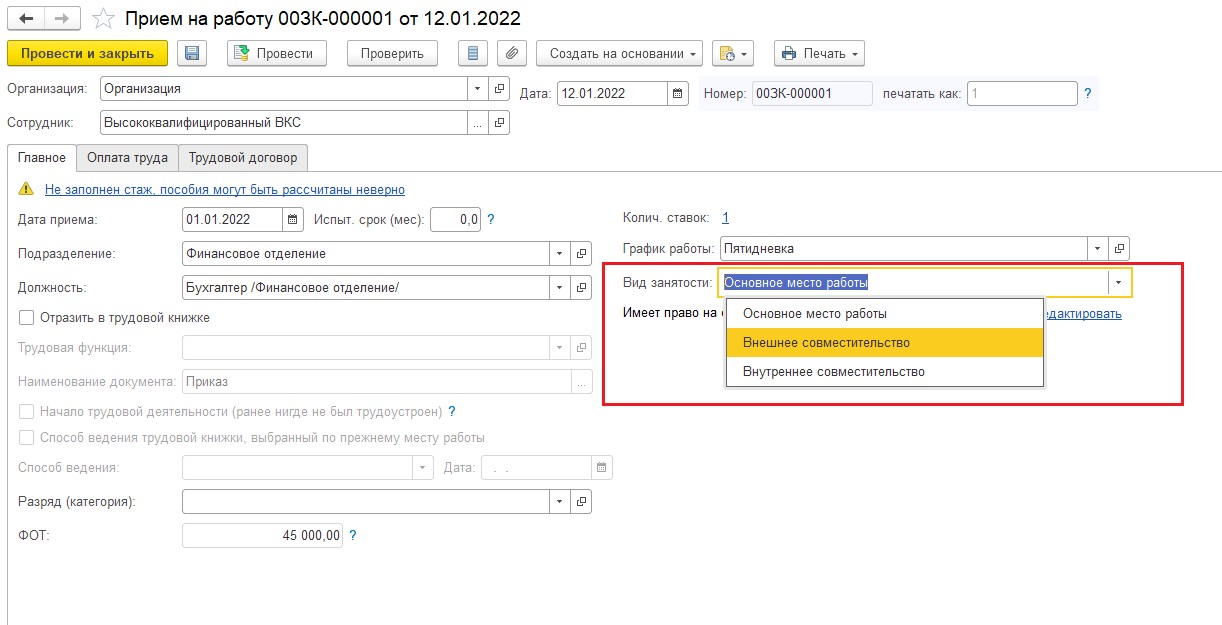 Как перевести внешнего совместителя на основное место работы в 1С:ЗУП 3.1 - Микос Программы 1С