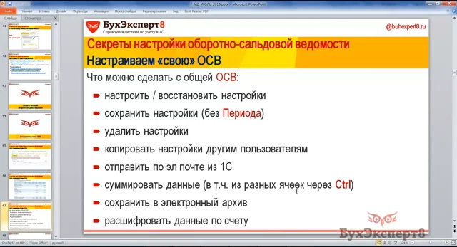 ОСВ. Оборотно сальдовая ведомость в 1С Предприятие