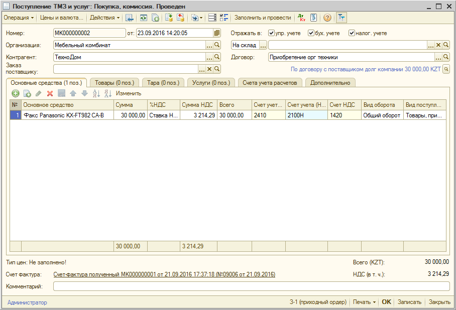 Принятие к учету ОС в 1С 8.3 - пошаговая инструкция