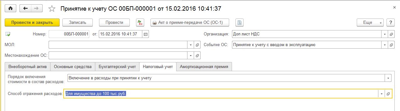 Принятие к учету ОС в 1С 8.3 - пошаговая инструкция
