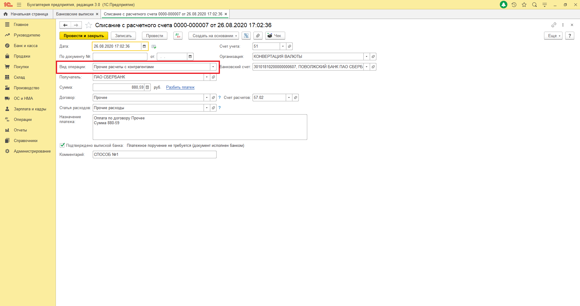 Оформить конвертацию валюты в 1С:Бухгалтерия 8.3