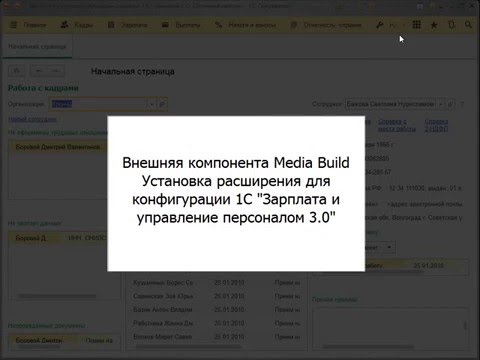 ВК MediaBuild установка расширения для 1С Зарплата и управление персоналом 3.0
