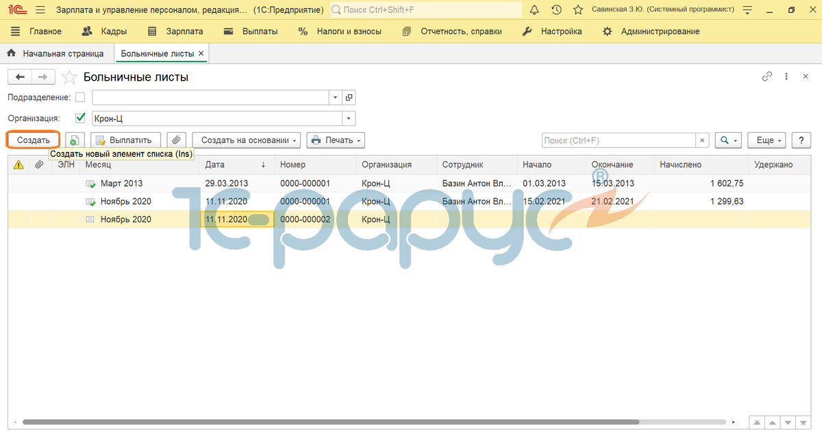 «Начисление больничных по беременности и родам в 1С:Зарплата и Управление персоналом 8 »