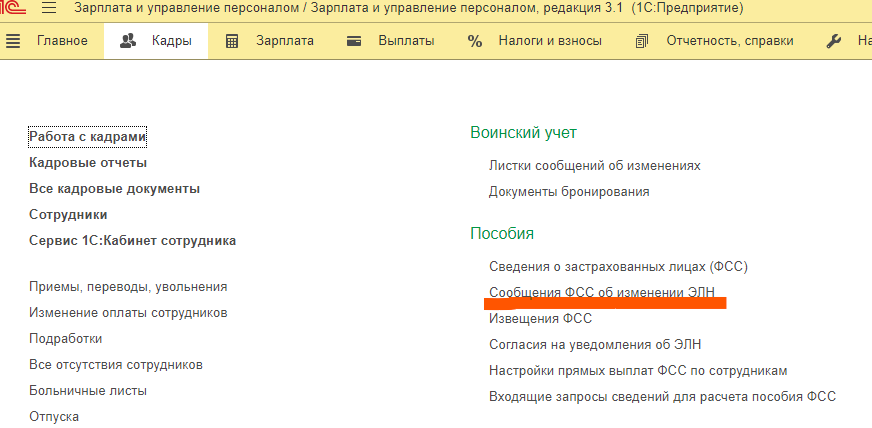 Оформление больничных и обмен с ФСС в 1С: ЗУП